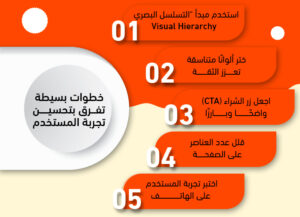 رتب عناصر الصفحة حسب الأهمية، بحيث يرى الزائر أولًا العنوان، ثم صورة المنتج، ثم السعر، وأخيرًا الزر.